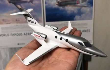 ホンダジェットのミニカーならぬミニプレーンを頂いた。改めてエンジンの搭載位置がライバルより低く、上反角無しの主翼形状に驚きます。エンジンが機体に付いていないため、乗った人に聞くと機内は静かだという。死ぬまでに1度乗ってみたい。ANAの子会社がチャーター事業も始めるそうだけれど、そんなお金無いし。アメリカなら手の届く金額になるか?