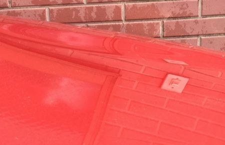 もう少し近づいて写真撮ってみました。これまた写真をクリックするとよ~く解る。白いのは充電用のコンセント。上の写真にも写ってます。壁のレンガ模様や、デコボコのある曇りガラスの模様まで映り込んでる。本当に2年間、水洗いしかしていない。前述の通り洗車機だって使う。キチンと施工されたガラスコーティングの効力は本当に素晴らしいと驚く。