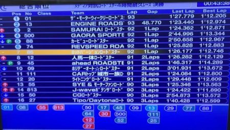 3番手まで浮上し私の次は再び鎌田さん。雨の中、良いペースでラップを続け、残り1時間の時点で2位へ上がりさらにTOPを追う! アンカーの大井センシュ、500番とのタイム差は11秒です--というあたりまでは毎年のこと。けれど終盤になって燃料が厳しくなりペースダウンを余儀なくされ、泣く泣く3番手か4番手というのがいつものことでした。ところが、でございます!