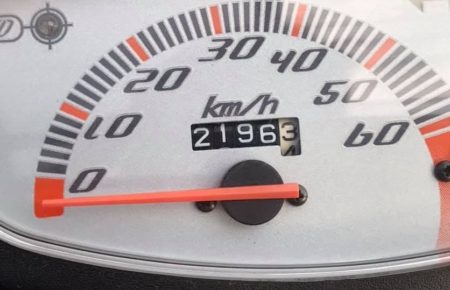 真横から見たらこんなです。まぁフロントが割れてる状態を考えればずっといいか? 長く動かしていなかったせいか始動性イマイチ(キックなら一発です)。本来ならセルで掛かるのだけれど。1度掛かったらセルでもイケる。乗っていればよくなるのかもしれません。試乗チェックしてみたらパワフルな2ストなので加速良い! もはや2ストエンジンについちゃ絶滅ですね。