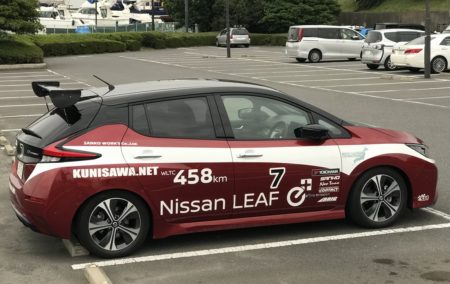 リーフe+が納得の仕上がりになりました! 喜多見さん入魂のリアスポイラー、形状も取り付け位置もバッチリだと思う。リーフの車検合格寸法に合わせて作ったため、リーフより幅の狭いクルマには付かないです。移動用にノーマルホイール+タイヤを履かせているけれど、18インチの225/45R18のブルーアースGTあたりをセットしたらコーナリング性能を確保しつつ快適性もキープ出来るだろう。