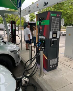 ガソリン294円はトンデモなく高い! 日本の170円などかわいいモンだ。じゃ皆さん燃費向上のためチンタラ走っているかとなればさもあらず! 120km/h制限区間だと130km/h以上がアベレージです。ちなみに高速道路のSAには急速充電器もある。1kWhあたり13.5円で案外安い! 日本の家庭なら33円くらいだ。リーフ級の電気自動車だと6kmくらい走れる。電気自動車圧倒的に有利!