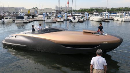 試乗レポートはベストカーで。そうそう。搭載されているエンジンを聞いたら、LC500など用の5リッターツインカムで450馬力×2。アクセル全開にすると「カーン!」というカムに乗った音を響かせる。こういったフネは全く実用性無し。浦安マリーナにでも陸置きし、VIPが来たら湾奥クルーズを楽しんでもらえばいい。