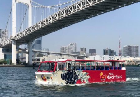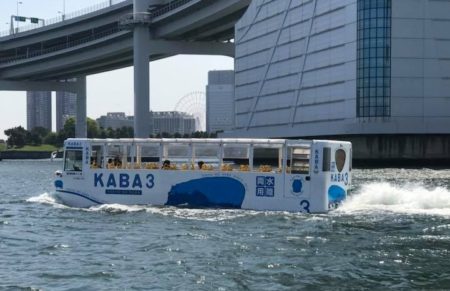 いろんな会社が水陸両用バスを運行している。上が『KABA』で下はハワイなどでお馴染み『ダック』。連休に東京観光したら、ぜひとも乗ってみてください。