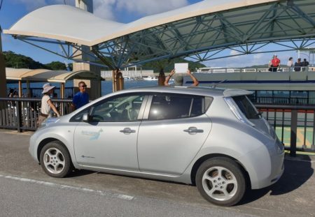 考えてみれば狭い阿嘉島だとチョイ乗りばかり。前浜に面しているダイビングショップ『マリンリンク』と港の距離は1km程度。送迎のため使うなら電気自動車が一番効率良いと思う。しかもリーフの場合、エアコンの立ち上がりだって素晴らしい。断熱ガラス使っているため、インテリアに熱が溜まらないのだった。さらに電気代はガソリン代の6分の1程度で済む。