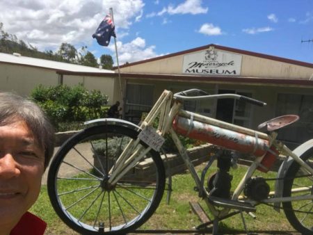 シドニーからコフスハーバーに行く道すがら『ナショナルモーターサイクルミュージアム』の看板を発見。シドニーから200km走ったナビアックという小さい小さい町です。ダメモト&冷やかしで入ってみる。入場料15ドルとけっこう高いが、旅なんてそんなモン。