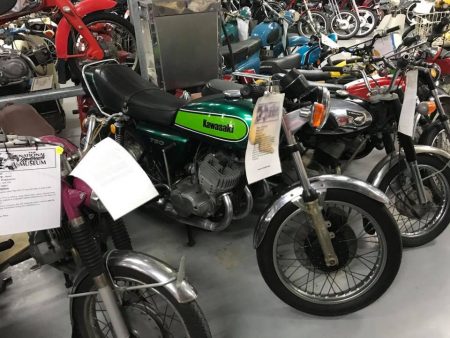 さらにコシが抜けたのは日本車の館。カワサキの3気筒、全てある! こいつはH2。750ccです。久々に見ましたね。もちろんマッハ3など普通にある。ここのコレクションの凄さを物語るのが下のRE5。何と2台ある。普通の博物館なら1台あれば十分と思うハズ。