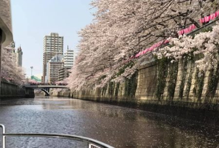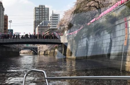 とりあえず土曜日は干潮を過ぎた時間帯に目黒川突入。最も低いと目星を付けた橋まで50cmくらいあったため、25分くらい遡ってみることにした。満開の見事な桜です! ホンの少し散り始めた程度で葉っぱも出ていない。京浜急行や第1京浜をくぐり、大﨑、五反田とずっと桜が続く。『さくらテラス』のあたりから雅叙園まで素晴らしい! 普通、このあたりでUターンするらしい。