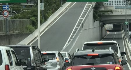 続いてガラガラの青梅街道走っていたら突如渋滞。事故かと思いきや、神輿が車線をほぼ使ってます。神輿=神様。これを担いでいるときはクルマなんか関係ねぇ~! というのが日本の常識。神輿にゃ勝てないっす。若い頃は私もそうでした。学校休んで神輿担ぎに行ってましたから。新宿から渋滞表示無しガラガラの首都高に入ると、代々木過ぎたあたりでパトカー出てきた。