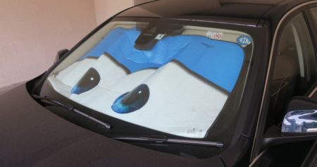 熱線吸収機能の無い単なるUVカットガラスだと、室内で直射日光当たった場所は70度近くなる。こうなるとエアコン掛けても内装材に熱がこもり、なかなか冷えない。クルマを駐めておくときは直射日光が当たらないようにすべきかと。ムカシながらのサンシェード、超有効です。駐車時にサンシェード使うと、次に乗った時の冷え方が全く違う(写真の330eも熱線吸収ガラス)。