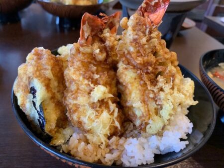 松下宏の食べ歩き・いすみ/『いけす料理あき』でボリューム十分の伊勢海老天丼に大満足