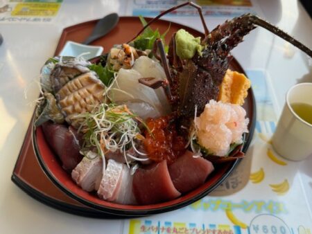 注文したのはこの店の最上級メニューである伊勢海老入り極上定置網丼です。注文を通すとすぐに責任者と思しき人がやってきて、『今日は伊勢海老がちょっと小さくて普通は250gのものを提供しているのですが150gのものしかありません。2尾にしましょうか』とおっしゃいます。