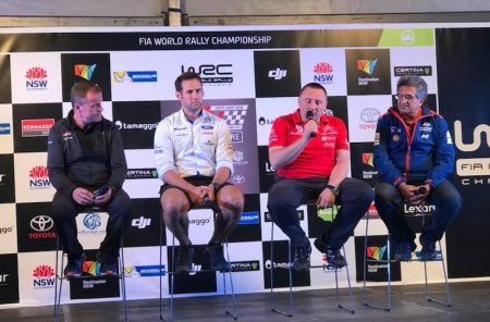 サービスパークに戻ったらトークショーをやってる。マキネン監督を始め、シトロエンのマトン監督、現代のナンダン監督(フォードは代打)が壇上に。しかぁし! 聴衆ときたら上を見て20人! もちろん3人は全く気にしないが、フォードの若手は仏頂面です。
