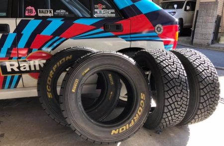 先日、欲しい人を募集したら、ランチア・デルタのレプリカに乗っているサポーターの方から連絡貰いました。205/65R15でランチア・デルタ用としてはオーバーサイズながら、レプリカ仲間にはフォードRSコスワースなど履けるサイズのクルマを持っている人もいると思う。WRXやランエボのレプリカならピッタリのサイズです。やっぱりラリー車にはグラベルタイヤが似合いますね~。