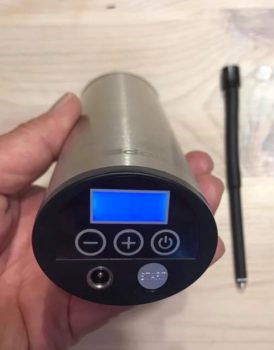 エア取り出し口は反対側にあり、自動車用と自転車用のホースが付属されておりどちらを使っても良い。ということで早速使ってみました~。さすが内蔵電池だけあり、パワー的には頼りない。されど昨今のリチウム電池の性能たるや強力! 180kPaまで抜いた空気圧を220kPaまで上げてみたら、4分ほどで完了した。秋になり気温低し空気圧下がった程度なら十分対応可能。