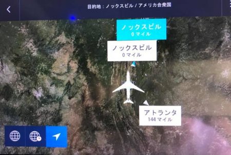 当然ながらホールディングである。ただ4000km以上飛んできてるため、それほど燃料に余裕無い? このまま燃料切れで強行着陸はイヤよ、と思っていたら、50分くらいグルグル回った後「200km離れたノックスビルに向かいます」。ということでアトランタからの乗り継ぎは不可能に。