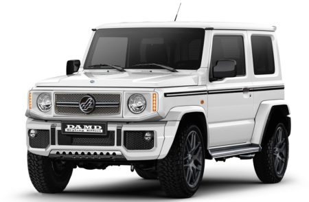 先日ドイツに行ったら、ドイツ人は口を揃えて新型ジムニーをベンツGクラスのパクりだと言ってました。なるほど『DAMD』というアフターマーケットのショップで発売するジムニーのドレスアップキット見たら、Gクラスそっくりになってます! フロントグリルだけでなくオーバーフェンダーの形状を変えると、相当Gクラスだ。ウエストラインから上は最初から似てる。