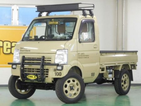 新型ジムニーいいね、等々妄想を膨らましていたら、軽トラでやってもいんじゃね、と思った。下は『LINE-X』さんというショップが仕立てたキャリィのドレスアップカー。こうなると軽トラのイメージもずいぶん変わる。何より新車買ったって100万円くらいで、4WDも選べます。ジムニーほどの走破性は期待出来ないまでも、けっこうドコにでも行けちゃうと思う。