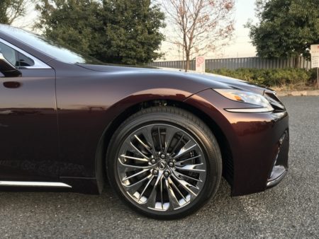 写真は取材内容と全く関係の無いLS500とS560のホイールアーチ回り。LS500、車高上げになっているのかと思うくらい隙間が大きく”中身”バレちゃってる。同じ場所&同じ光線の状態。LS500は20インチなのに、19インチのS560より見栄え悪いっす! ちなみに3枚上の写真は試しに車高Hiとした状態。最新のレクサスといえども攻め切れていないのね~。