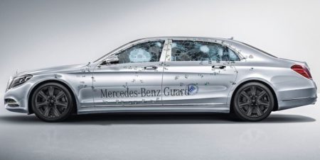 マイバッハS600ガードはカタログモデルである 欧州での価格を調べたら、おおよそ6000万円! 意外に安い? もちろんセミオーダーのため防弾性能についちゃ様々だと思うけれど、基本は「その地域にある最も強力な武器に耐える」というもの。標準スペックでも小銃(アメリカのM-16やロシアのAK74など)に対応している。日本なら標準で全く問題無いと思う。