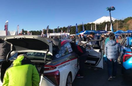 朝から富士スピードウェイのTGRF。4万人を超える入場者数だというのだから驚く! 確かに駐車場満杯の大賑わいです。ミライはメインステージ横の展示場所でした。燃料電池開発チームの手弁当ながら、いろんな”特技”持つ人が揃っているため、充実した内容。ミライから電気取り出し、いろんなことをやってます。
