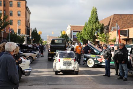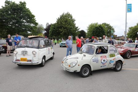 五大湖というもののスケールを、ここで初めて認識する。さらに念願の2ショット撮影達成。ThisとThatのGuyコンビのフィアットと、スバルが並んだ写真が撮れた。実はポルシェ356も近くにいたけれど、このスーパーカーは、出発のタイミングが若干違った。並べて撮れなかったのはレーススケジュールのせいです。